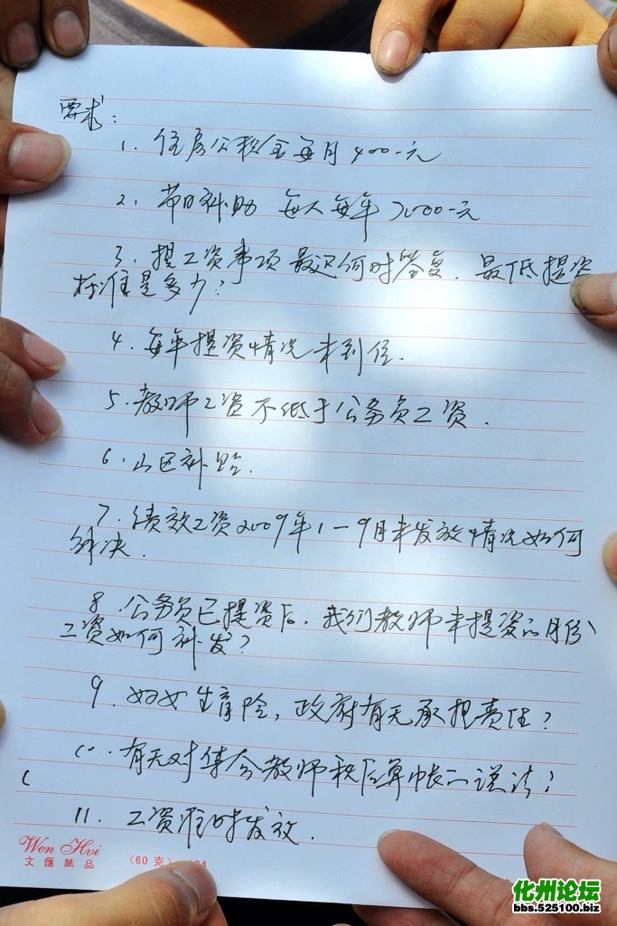 QUOTE(lkjlkjlkjlkj @ 2011年10月01日 Saturday, 05:26 PM) 最后一张 [snapback]3232101[/snapback] 合理,支持!请点击以下视频观看 国庆节化州1000多名教师到市政府讨薪视频[flash]