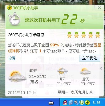 QUOTE(I しovのYoひ @ 2011年10月24日 Monday, 08:39 AM) 今天破纪录了 [snapback]3252707[/snapback] 试过一次21秒,没截图,然后清理一下电脑缓存 重启要24秒了