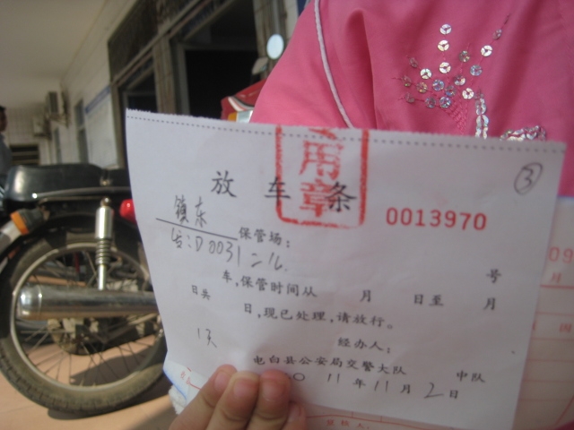 在去水东中队交罚款之前,我致电电白公安局的一位中层干部,他告诉我:“有些助力车是上不了牌的!”