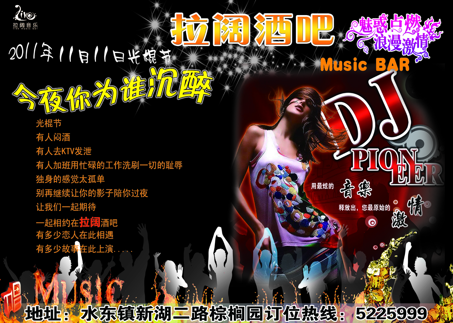 B binbin0668 幼儿园 注册 2008-02-04 消息 26 反馈评分 0 点数 0 2011-11-09 #1 2011年11月11日光棍节 水东拉阔酒吧约定你 附件 拉阔酒吧副本1.jpg 1.7 MB · 查看: 323