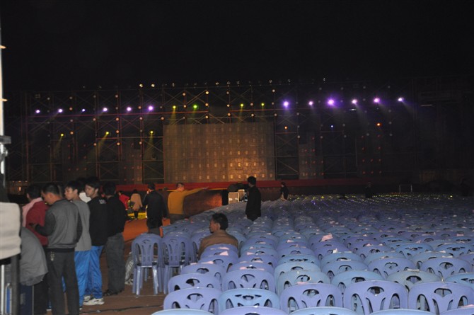 晕,怎么我看上去这舞台和乡村年例、野鸡歌舞团没什么两样,寄望音响效果了。