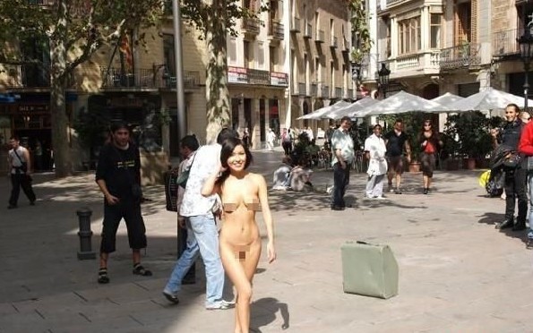 这女人是美籍华人,裸走全球,说是宣传环保。