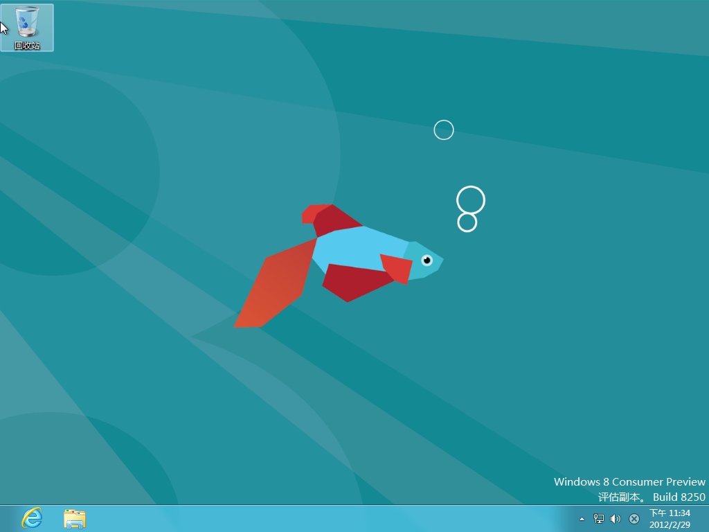 完全放弃自win95时就有的延续了10多年的开始界面,全新的metro界面,新颖脱俗。 [attachmentid=291657] 这条鱼,是微软最新打造,在打开IE浏览器时,会游动! [attachmentid=291656] 全新的,舒服的主题,沉稳,成熟。 [attachmentid=291658]