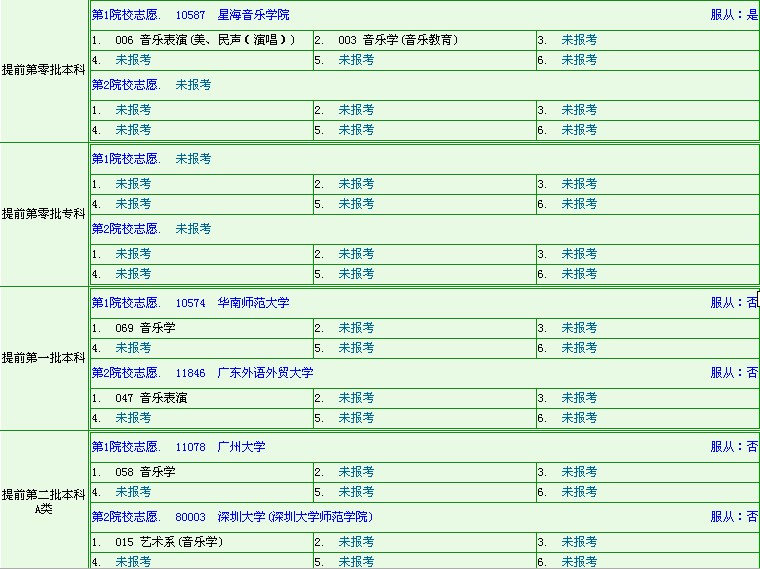 QUOTE(kennylee @ 2005年05月17日 Tuesday, 01:24 AM) 第一批本科 第1院校志愿. 11846 广东外语外贸大学 服从:否 1. 028 物流管理 2. 026 人力资源管理 3. 002 国际经济与贸易 第二批本科A类 第1院校志愿. 10590 深圳大学 服从:否 1. 007 英语系 2. 001 经济学院 3. 009 日语系 第2院校志愿. 11078 广州大学 服从:否 1. 005 物流管理 2. 007 人力资源管理 3. 010 国际经济与贸易 4. 024 英语 5. 025 日语 [snapback]347769[/snapback] 你第二批第二志愿报废了!!! 都没有好好看我给你们的建议,伤心~~~