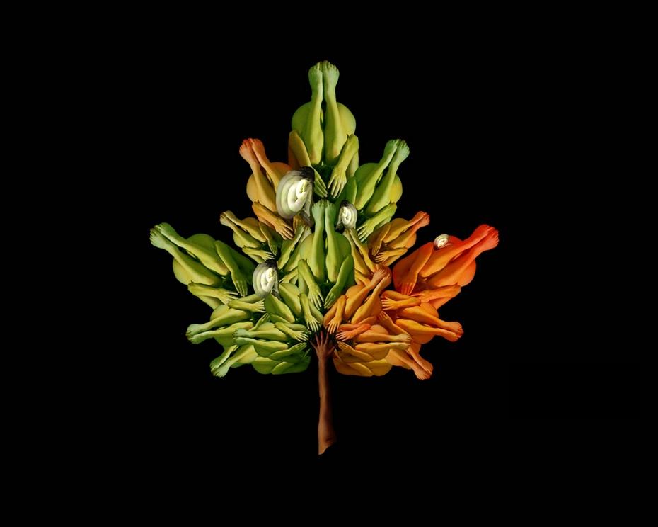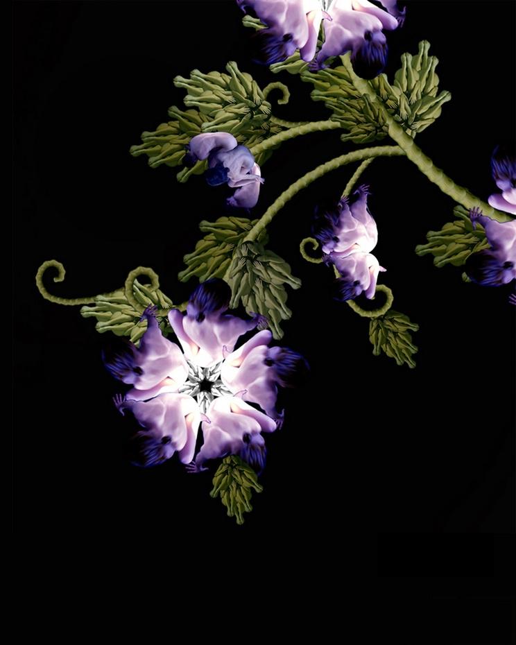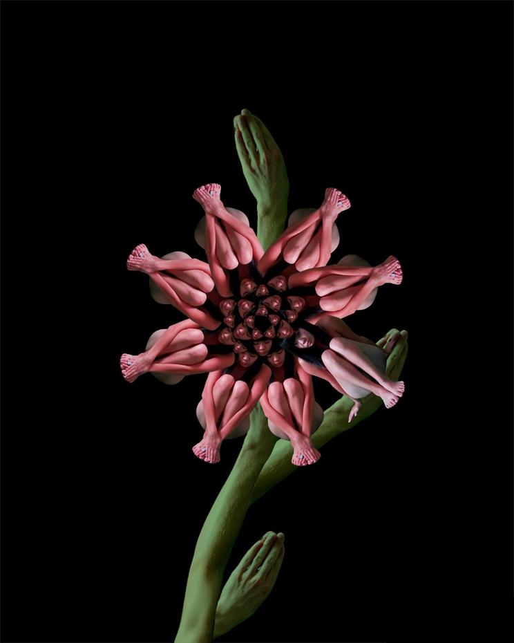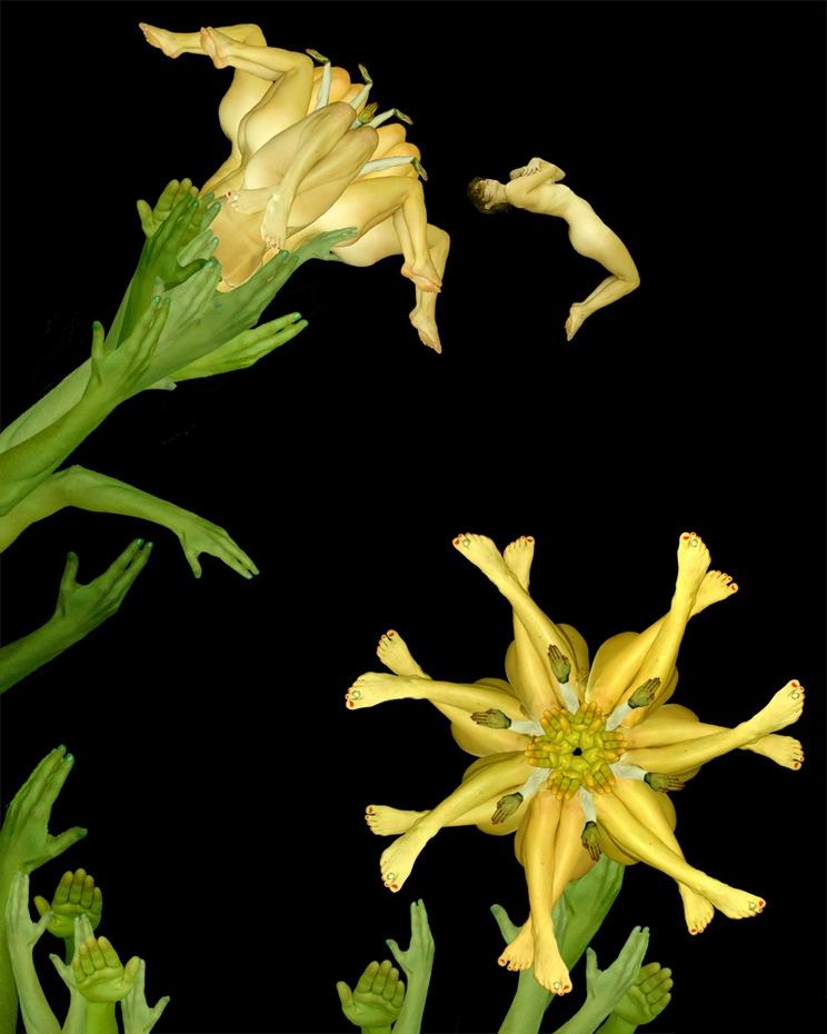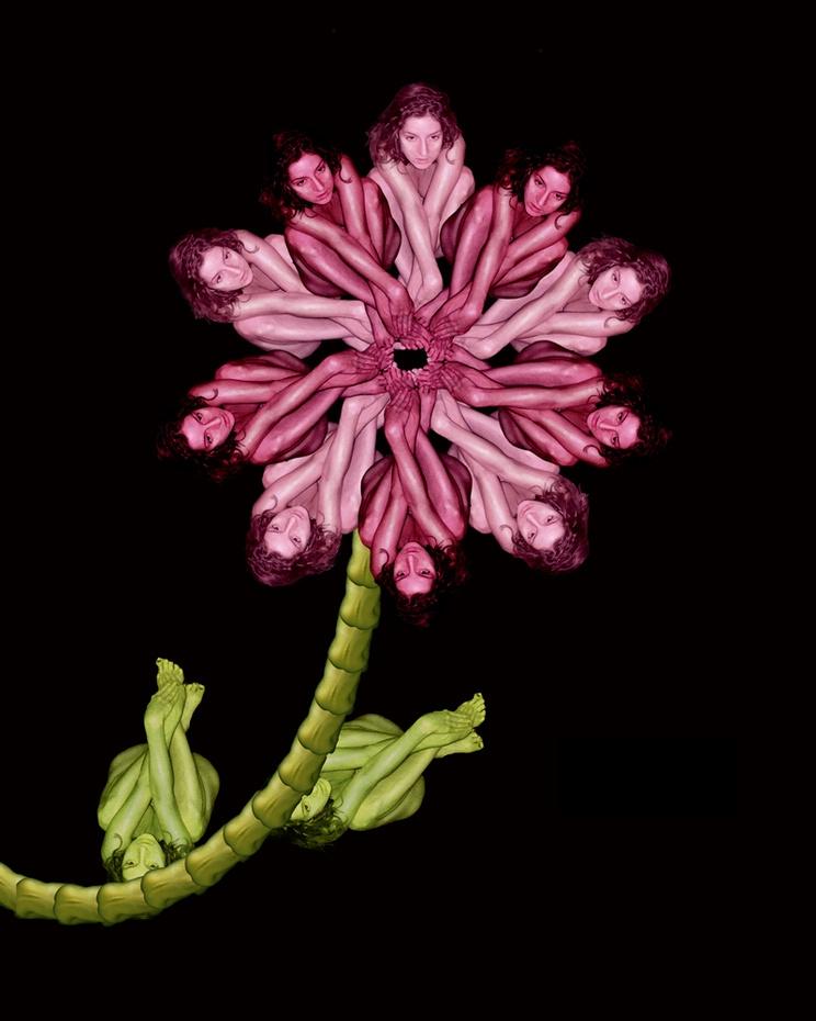 一位来自美国洛杉矶25岁的年轻女孩Cecelia Webber拍摄了一系列裸体人像,然后花费数百小时电脑制作完成惊艳的花卉和蝴蝶图片在互联网上引起轰动。Cecelia webber将人体概念化,把手抽象成种子,腿变成树叶或花瓣。这些摄影作品中的花卉、树叶和蝴蝶是由成千上万个裸体人体组成的。