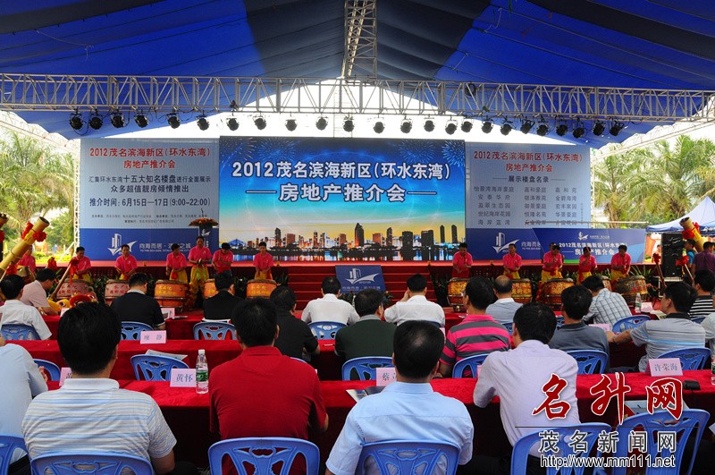 名升网讯 6月15日上午9:30分,在茂名市文化广场(图书馆内),由茂名日报社与电白县房地产行业协会携手举办的,6月15―6月17日,为期三天的2012茂名滨海新区(环水东湾)房地产推介会开幕式在此隆重举行。这次茂名房地产推介会是茂名史上最大规模的房地产盛会,十五家大型知名楼盘联袂参展,为市民献上精心打造的房地产楼盘展示盛宴,楼盘户型从50平方起单套房到单栋别墅都应有尽有,丰俭由人,务求令到会观展的市民可以在其中找到心仪的“新家”。
