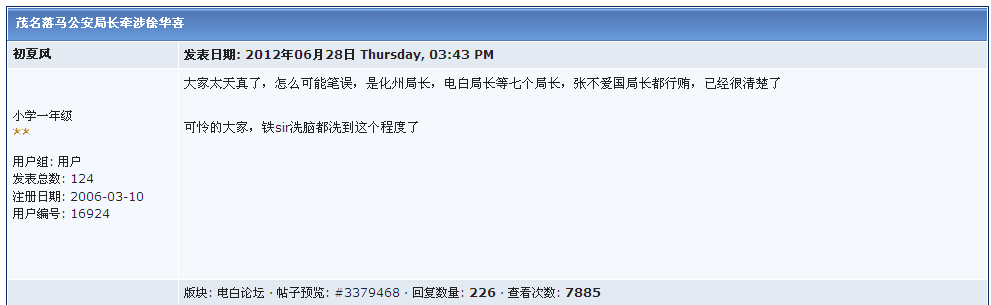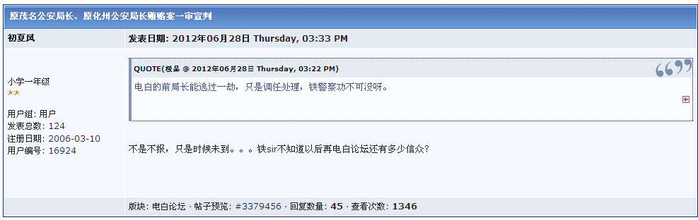 2、电白之音引用南方日报的报道,牵扯几个人,电白的除了徐还有张。张治下的电白治安好还是徐治下的电白治安好?以您零容忍的尺度,为什么对张不闻不问而对徐不依不饶?