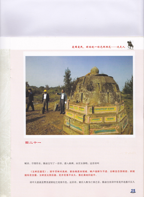 洗夫人15岁(也有史料说是20)嫁给霞洞冯家村冯宝为妻,从此以后,她在霞洞跟随夫君平贼讨乱70年,在霞洞留下无数文物遗址,至今她的子孙后代坟墓还是荒凉一片,无人问津!这么大的纪念活动,竟然连霞洞只字不提!伟栋君 ――作为霞洞人,你作何感想?