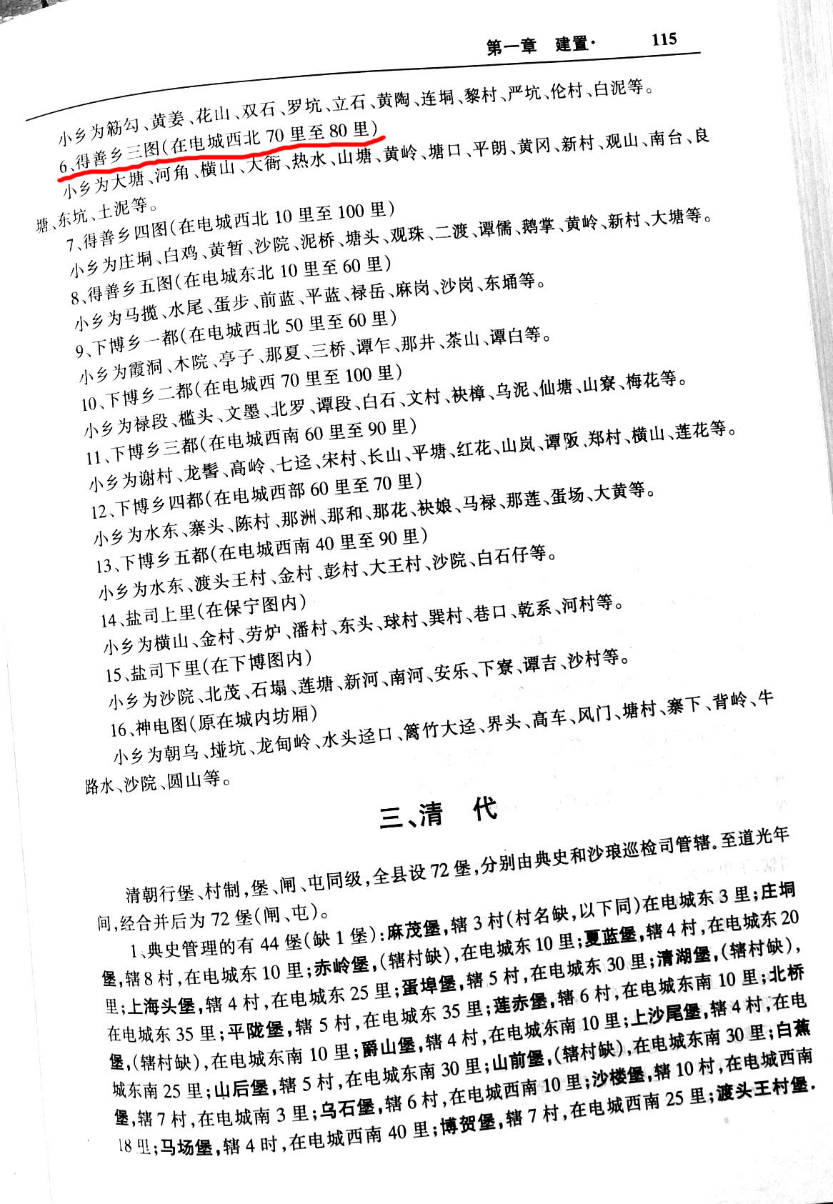 白话文应该是――在县西北七十里至八十里,得善乡三图