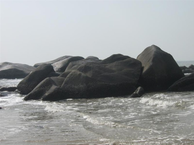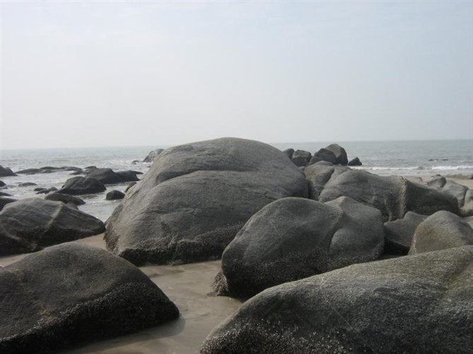 中国第一滩,黑黑的海水,黑黑的沙,下水上来全身痒
