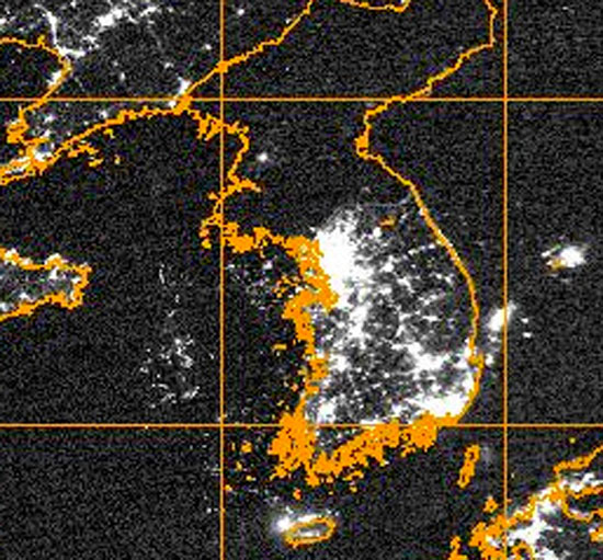 漆黑的朝鲜,灯火通明的韩国