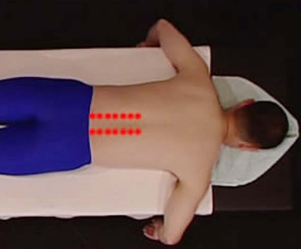 介绍个方法你帮朋友试试,看到上面图片红点位置吗?把中指弯过来按压那些位置,找到痛点,然后把这痛点按开,问题就解决了,按的时用力是与腰垂直的,若这部位没痛点,就往上找。