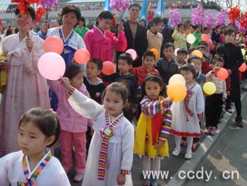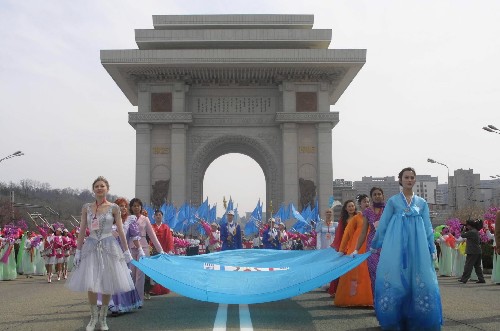 朝鲜举办“四月之春”――广场文艺,庆祝太阳节。
