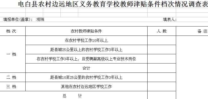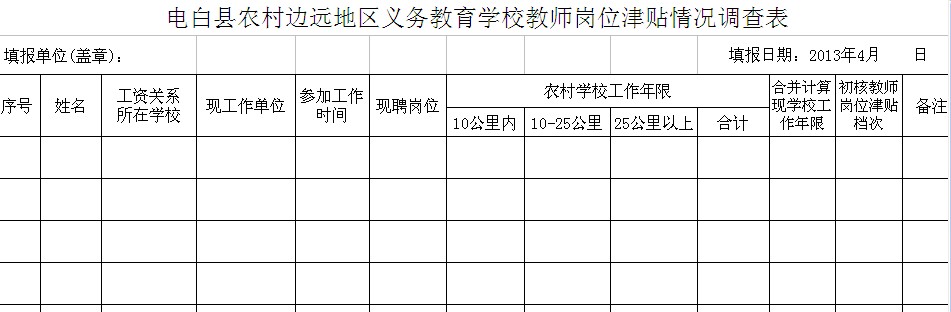 电白县农村边远地区义务教育学校教师岗位津贴情况调查表,漏洞多,易造假,个别教师虚报参加工作时间,有的把在近的地方工作的时间合并到远的地方工作时间,通过有意延长自己的工作时间,最终达到一档津贴的目的。 如果审核不严格,容易造成相同条件下的教师,敢于造假的得到的岗位津贴多,老实不造假的吃亏! [attachmentid=311755]