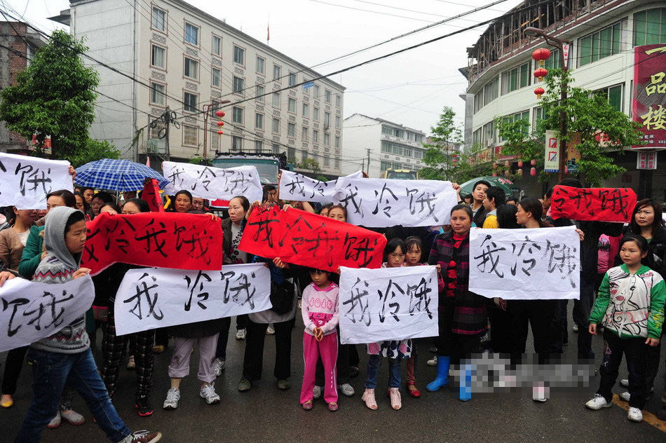 # 凤凰网特派员#灵关镇钟灵村几十位村民涌向镇抗震救灾指挥部,妇女孩子居多,情绪激动,一位村民称他们一家四口这几天只得到两碗方便面,要求政府解决吃饭 问题。宝兴县县长马军独家回应:地震时向民众反应两天后物资到达,但没想到通路困难,物资正在积极调配,会尽快解决