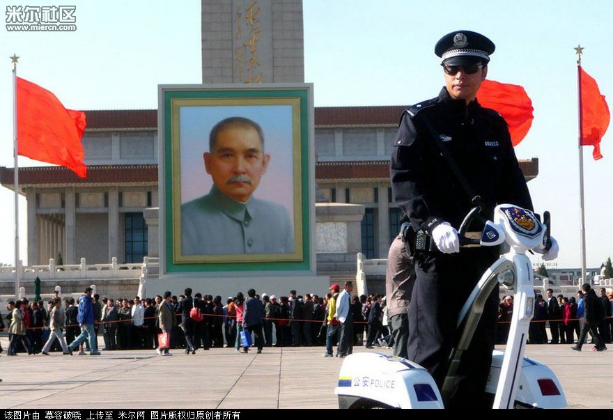 五一前夕天安门广场惊人一幕震撼世界 4月27日,北京,孙中山先生的巨幅画像亮相天安门广场,迎接“五一”国际劳动节的到来。与之对应的是前面川流不息的长队,这些人是干什么去的呢?毫无疑问他们是瞻仰毛主席去的!任时光飞逝,历史就是历史,伟人还是伟人这是谁也抹杀不了的……