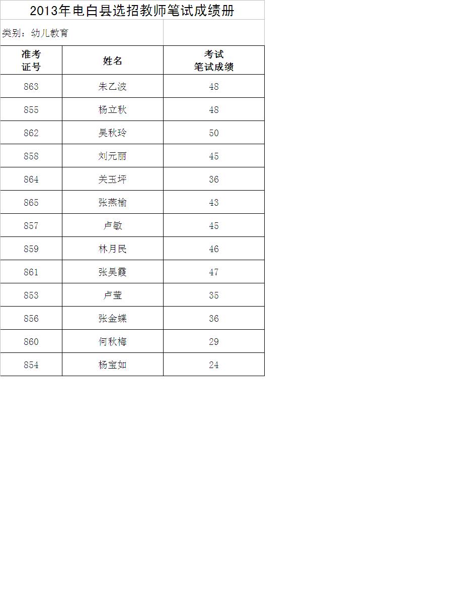 电白县2013年公开招考公办教师启事