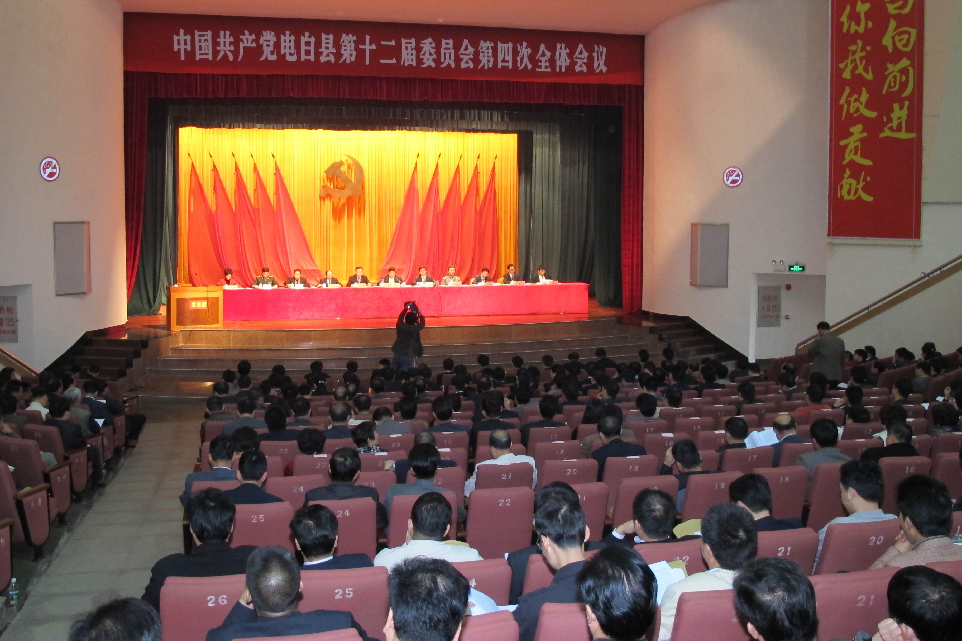 电白县委十二届四次全会在县大会堂隆重召开。这次会议的主要任务是,深入学习贯彻党的十八大、中央经济工作会议和习近平总书记视察广东重要讲话精神,学习贯彻推进ZG中央政治局委员、广东省委书记胡春华到茂名视察讲话精神以及省委十一届二次全会、市委十一届二次全会精神,回顾总结2012年工作,研究部署2013年工作,动员全县各级党组织和广大干部群众进一步解放思想,改革开放,凝聚力量,攻坚克难,继续开创电白科学发展阔步向前进的新局面。