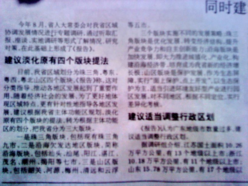 今年3月,广东省城镇化发展“十二五”规划提出,“十二五”期间,广东全省城镇化率每年提高0.8个百分点左右,2015年达70%,其中珠三角要打造成为更具综合竞争力的世界级城市群。