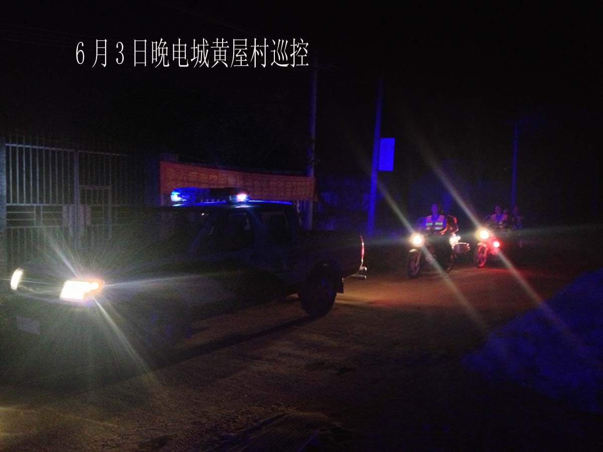 电城派出所全体民警、辅警自6月1日至今取消所有休息,全力奋战在电城治安整治工作中,电城派出所追缴赃车八辆、退回事主四辆,处理销赃嫌疑人两名,抓获贩毒人员一名,收戒吸毒人员四名,打击赌场一个赌博机窝点一个,行政拘留13人,刑事拘留1人.