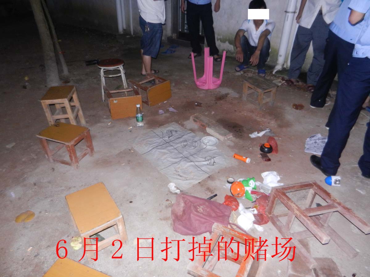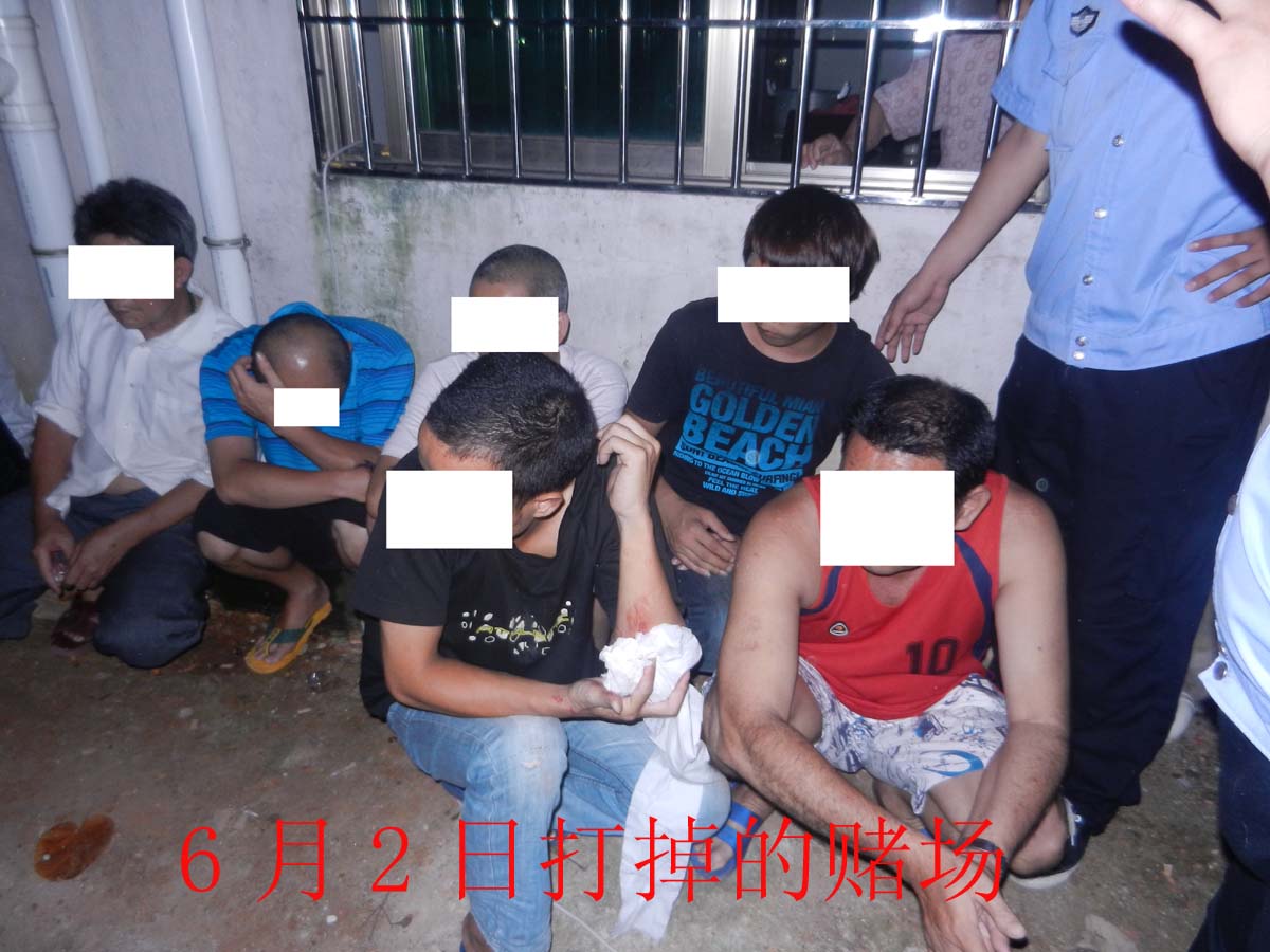 6月2日在电城海头村捣掉一赌场,行政拘留7人;