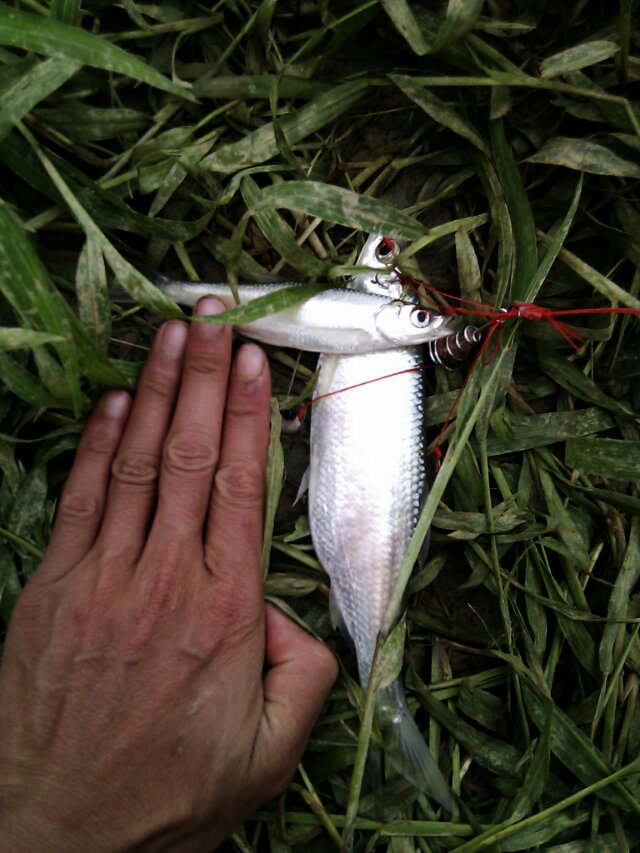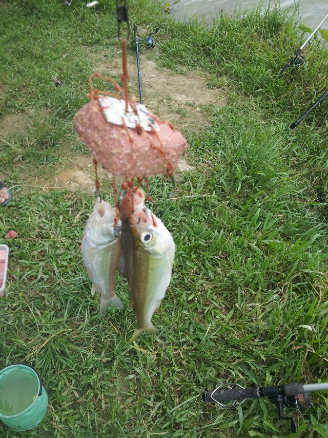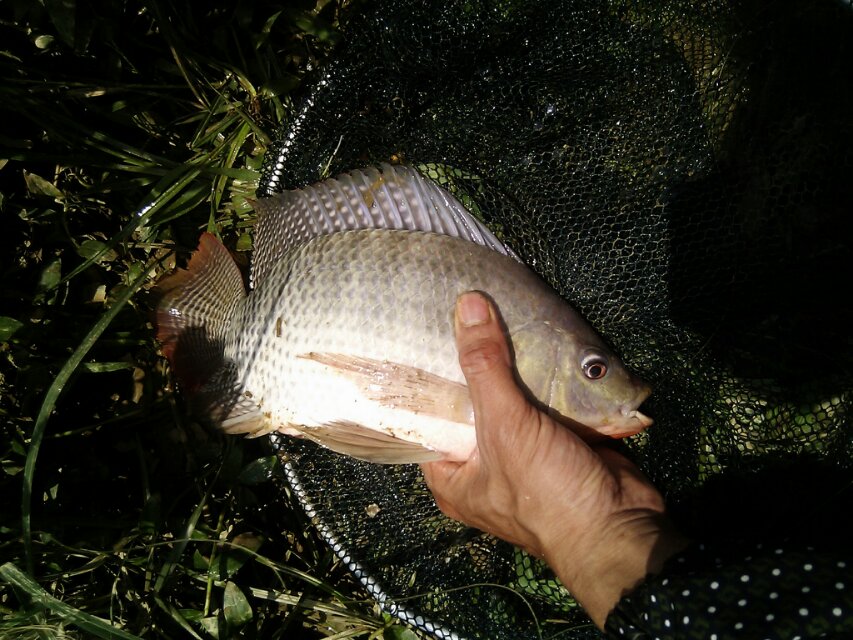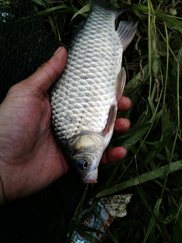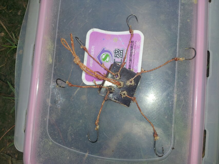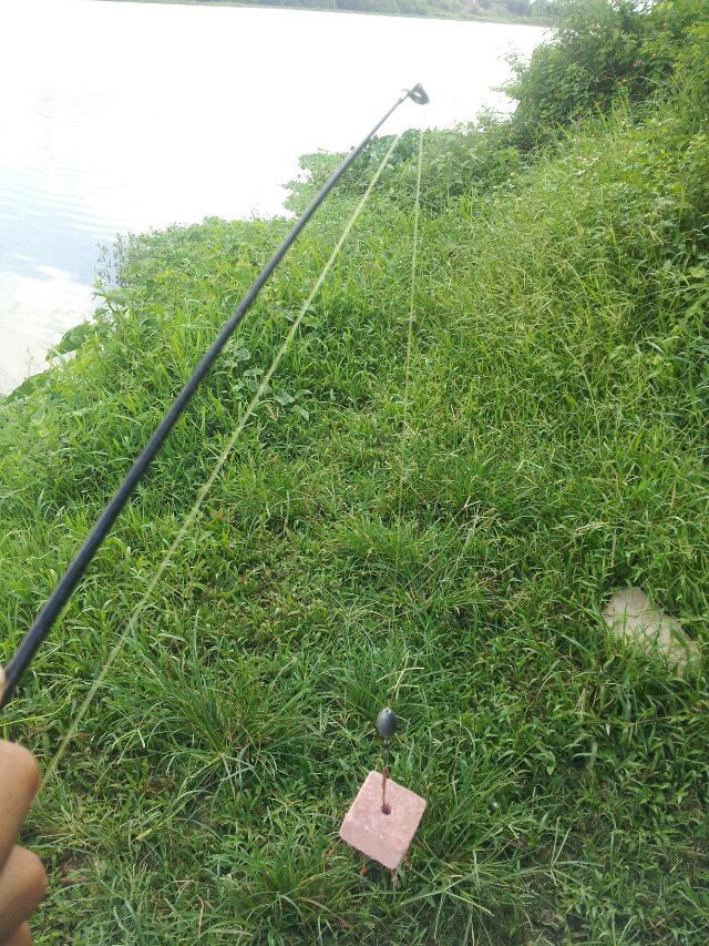 这种翻板钩的钓法不会很快来鱼,因为饵料要浸泡一点时间才会诱鱼。哪么你这个时候可以尽情地做其他事,比如玩手机,吃零食,拍照,要么看书,听收音机・・・・・・・・・你不必要眼盯盯着鱼竿,因为只有鱼铃响了才会有鱼来,就算鱼来了也不用着急,翻板钩一旦上勾,鱼很难逃脱的(我经常丢着鱼竿在河边,回家睡一觉过来,抱起几条大鲤鱼) 上鱼如图