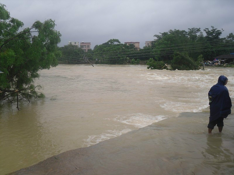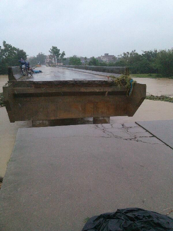 茂名市沙琅镇观青村的观青桥被洪水冲断。强台风“尤特”给粤西地区带来持续降雨,暴雨中心主要分布在茂名、阳江等地,茂名局部地区出现百年一遇特大暴雨。