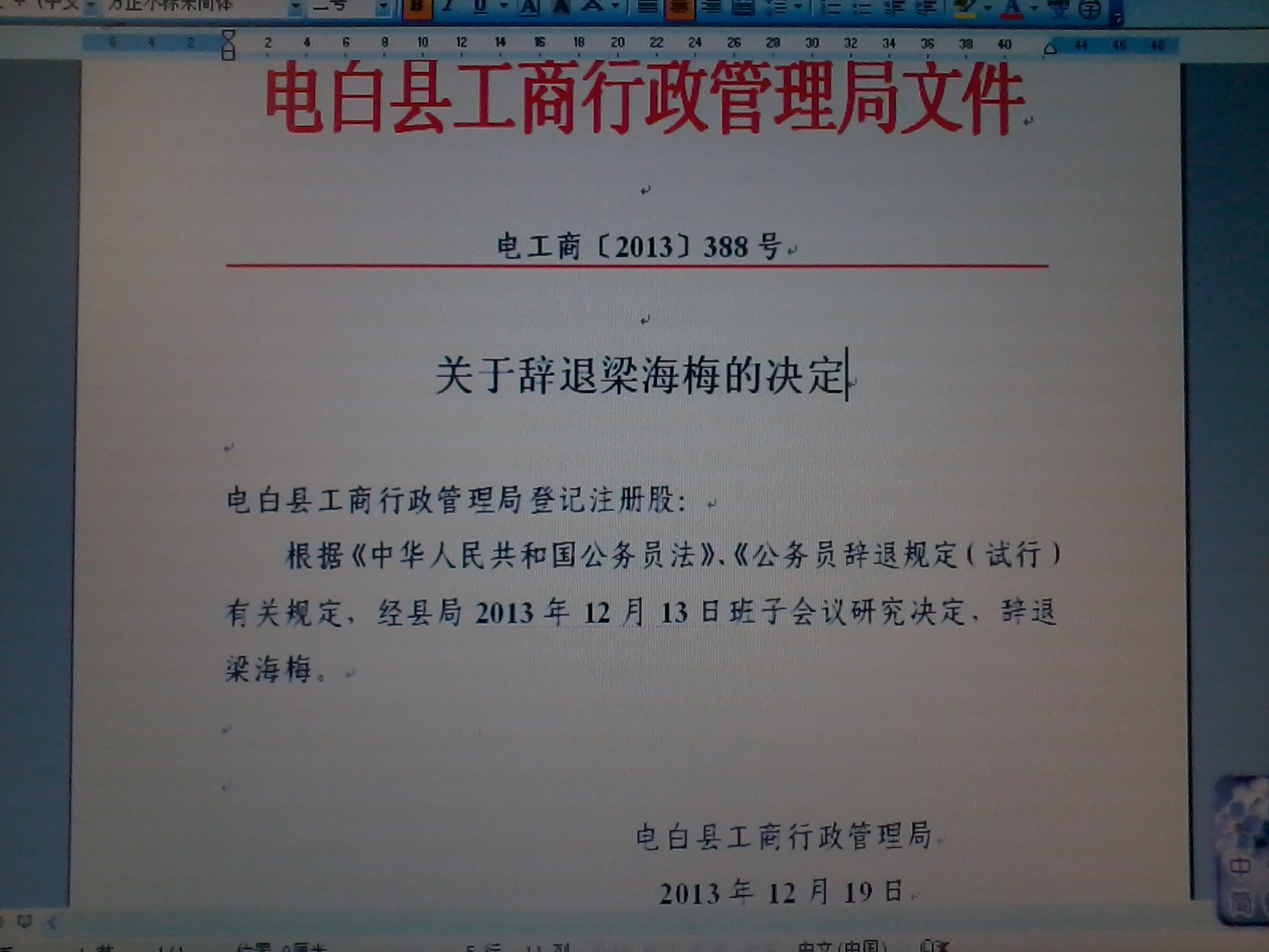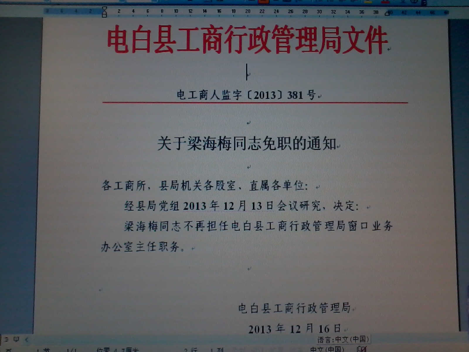 QUOTE(那年我们在一起 @ 2013年12月30日 Monday, 09:01 AM) 有朋友发来文件,梁主任真的被处理了。 [attachmentid=321498] [attachmentid=321499] [snapback]3606659[/snapback] 可惜了。好端端一个公务员,也值几十万啊。