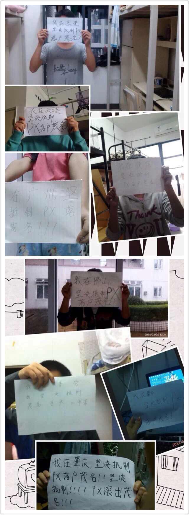 这是来自茂名学子从全国几十所高校发回的诉求与对家乡的期望,我们不是愤青,只是想通过这种和平的方式表达自己的观点,无论这个项目好坏与否,它都是一个不得人心的项目。政府应该考虑的是充分了解我们的诉求,而不是通过打压和茂名人民作对抗,我们不愿意看到暴力,我们需要的只是一个还能居住的家,一个能让我们在外地还能引以为傲的海滨城市…