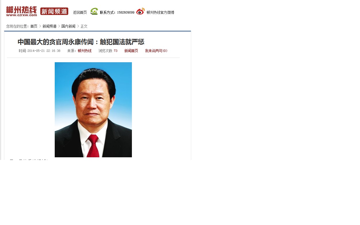 我 我不是强盗 高中一年级 注册 2009-07-30 消息 556 反馈评分 36 点数 11 2014-06-02 #17 四处都有载,看来是真的了!这里也有: http://www.czrxw.com/news/china/106589.html 附件 中国最大的贪官周永康传闻.jpg 85.1 KB · 查看: 325 中国最大的贪官周永康传闻2.jpg 159.8 KB · 查看: 313