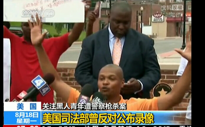 当地时间8月9日,黑人青年迈克尔•布朗在弗格森的一条街道上,在同警察争斗中被对对方开枪打死。一位目击者、迈克尔•布朗的朋友说,迈克尔•布朗当时并没有武器,警察开枪射击并杀死他的时候,他的手正举在空中。当地警方并不同意上述说法,称“迈克尔•布朗不是一个无辜的受害者”。