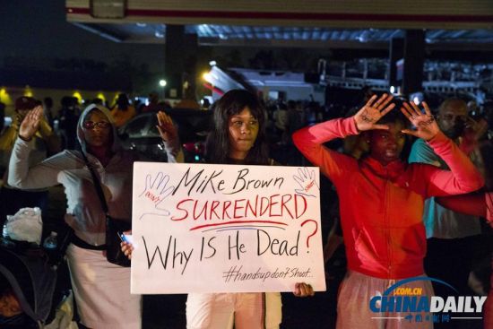 中国日报网8月17日电(小唐) 据英国广播公司17日报道,美国密苏里州18岁黑人青年被白人警察枪杀引发持续骚乱。密苏里州州长杰伊•尼克松16日宣布枪击案案发地弗格森进入紧急状态,并且实施宵禁。不过约150名示威者在16日午夜前仍不肯解散回家,警方最后朝他们发射了烟雾弹。