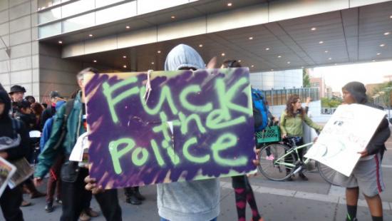 当地示威者最近一次表达愤怒的情绪是在15日晚上,而之前弗格森警察局长托马斯•杰克逊刚公布了射杀布朗警察的名字。