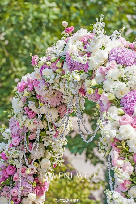 相识.相知.相爱。 淡雅的色系,有着维多利亚式的华丽典雅的风格,簇拥的花朵柔和了整个格调,犹如雨后初晴一般,空气中弥漫着清香,沁人心脾,恬静而温馨。美丽婚宴
