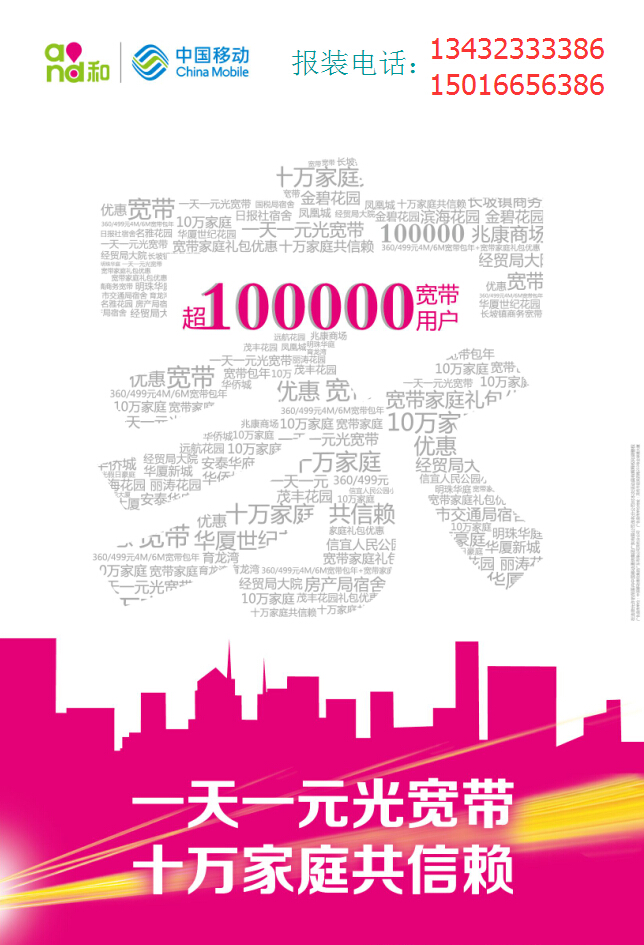 中国移动光宽,光纤到户,新装或续费送手机话费 (3人在浏览)