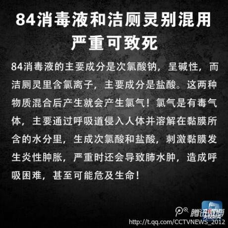 84消毒液和洁厕灵别混用 严重可致死