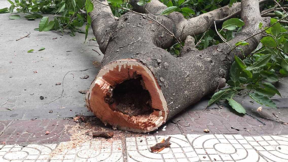 能理智点么?一是为了安全,安全隐患能少则少,二是树太大了,那树根都把底下的瓷砖撑起搞得支离破碎坑坑洼洼了,三是商户或住户也有这个诉求,这么一大棵树堵着门口。