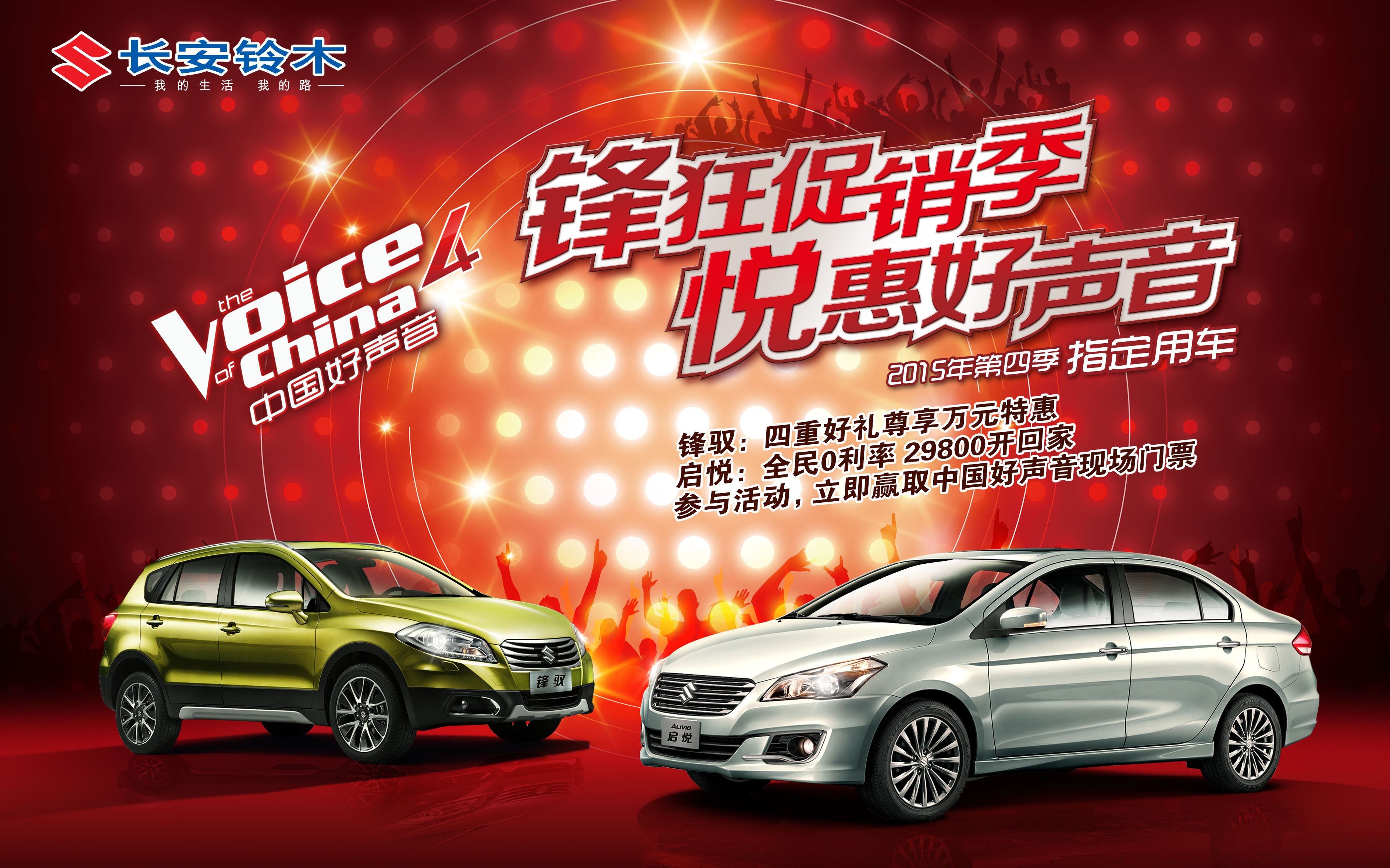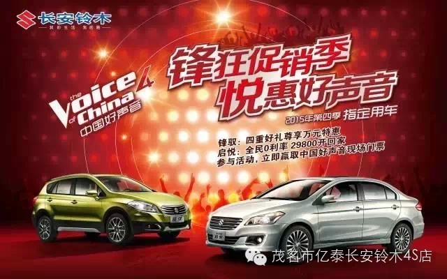 Duang的一下,长安铃木携启悦、锋驭等实力车型强势出击,并与《中国好声音》强强联手,为小伙伴们带来多重超强钜惠和《中国好声音》门票等缤纷大礼,助您轻松实现购车梦,随音乐high翻整个夏天。