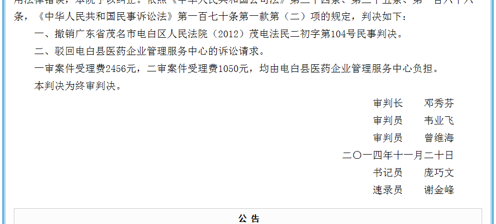电白县医药企业管理服务中心与电白县利民药业有限合同纠纷判决书 http://www.court.gov.cn/zgcpwsw/gd/gdsmmsz...209_6574445.htm [attachmentid=342161] [attachmentid=342162]