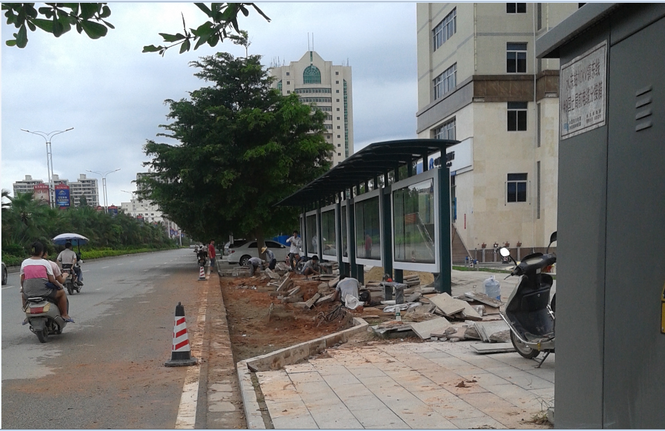 我觉当初是不是可以不砍掉原地的那些树,跟东阳街一样把低层的枝条剪掉,在树下建候车亭,这样可以保持绿化,又让候车亭更加荫凉。有点不理解的是就在隔壁有树枯了的地方不建,要把树砍了建,如果是位置选择问题,最起码有关部门应该移植到隔壁啊,我们区应该有园林管理这方面的人才,这不是问题吧。