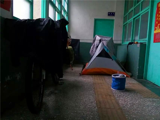 今天比较早到目的地―礁溪。在礁溪国民中学搭帐篷。校长爽快地答应了,门卫腾出一块地方,还把他的浴室借给我,教务主任送来一个苹果和猕猴桃。