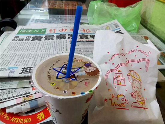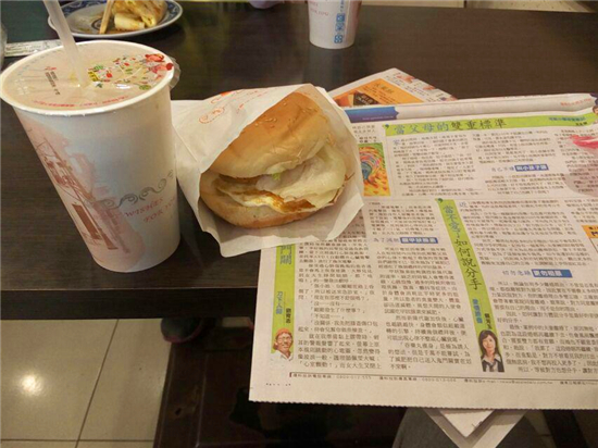早安。基隆。渐渐的喜欢了每个在台湾的早上―享用一份没味早餐的同时看看桌上的报纸。