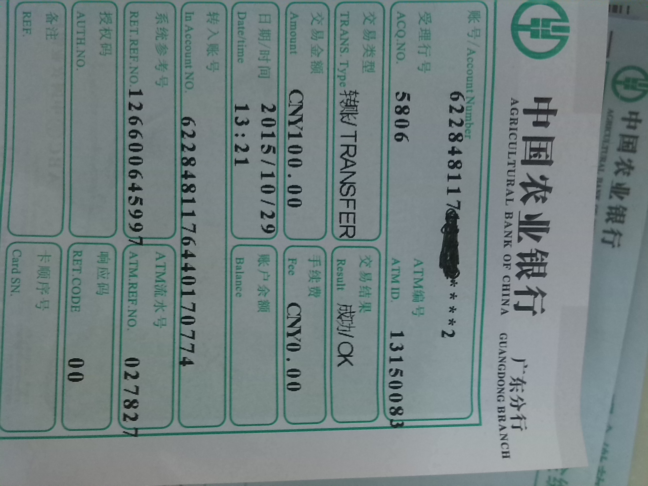 1.中国农业银行卡号:6228481176440170774这个就是易振华银行卡,中国农业银行【广东农行】茂名为民支行的地址:茂名市双山一路81号大院首层