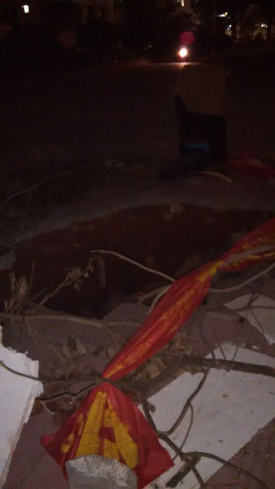 医院新小区门口的大坑有两三月了。据门卫说:是政府工程车碾烂的,估计政府会派人来修理。但是都两三个月了,依然一点修的动静都没有。这么一个大坑,小区进进出出的人员,隔壁大型小区人员经常路经这里,一个不留神掉下去到时是谁负责呢!尤其是晚上,小孩子是很容易掉下去的。希望有关部门能够尽快修好,还路于民。
