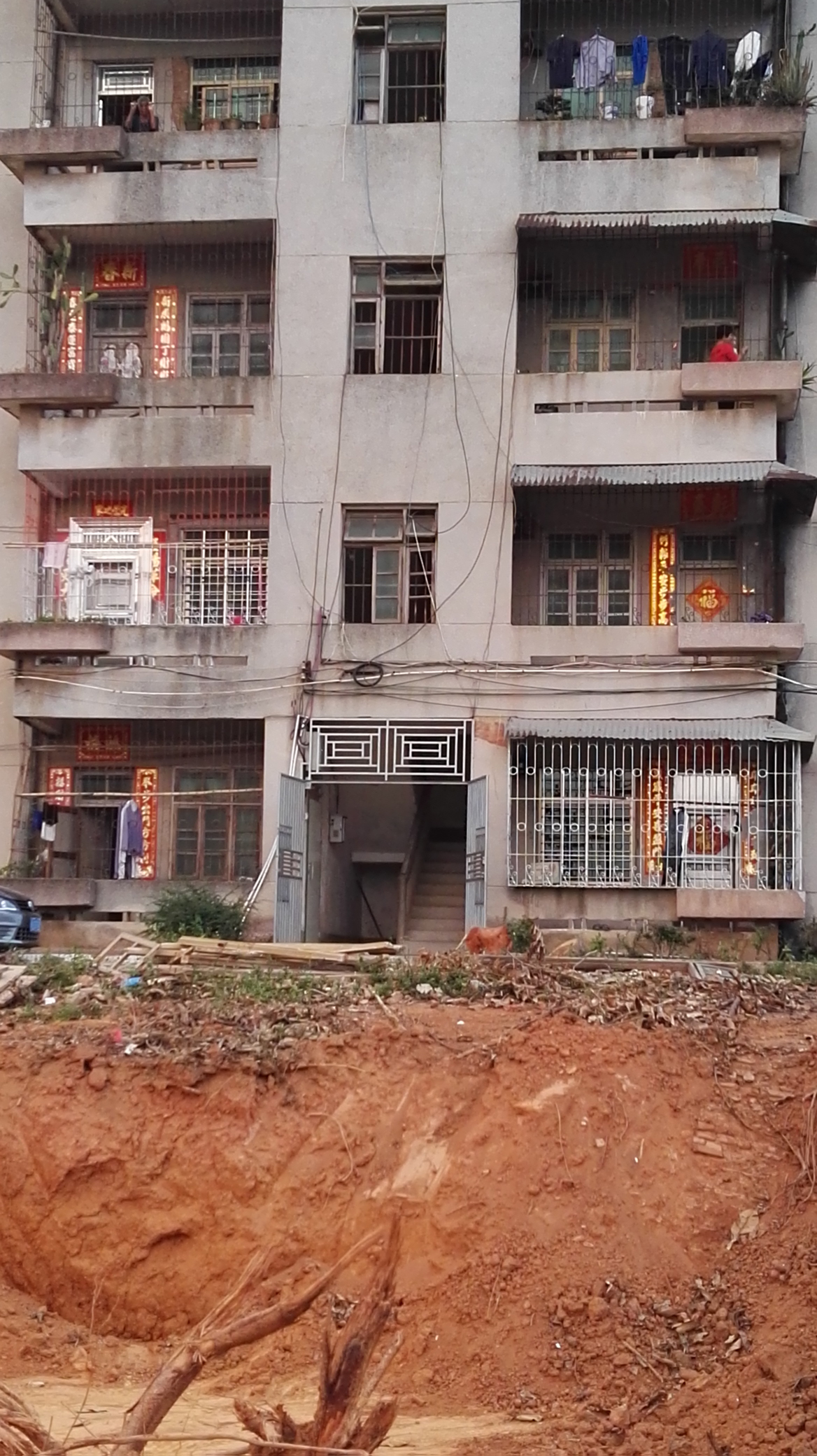 挖得这么深且黏着那两栋宿舍楼,暂且不提到底何时会楼歪歪或楼卧卧,假如有老人或小孩一不小心突然踩空从那摔下去,试问,这该谁买单?