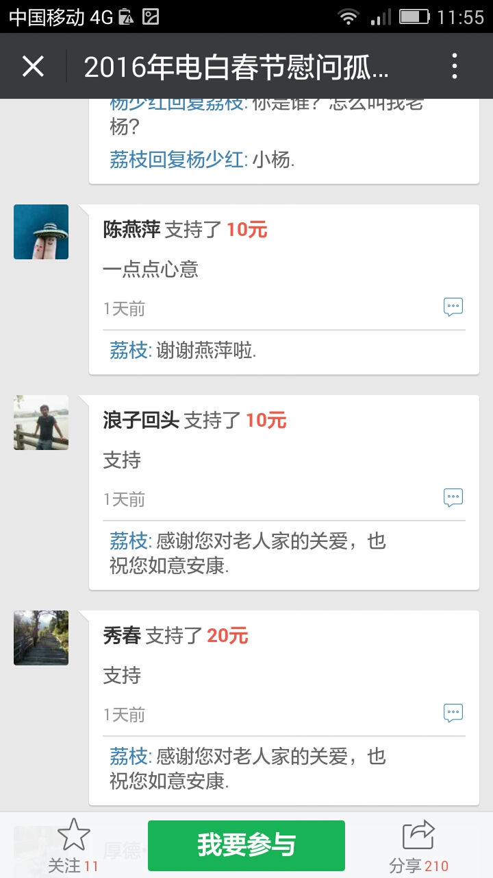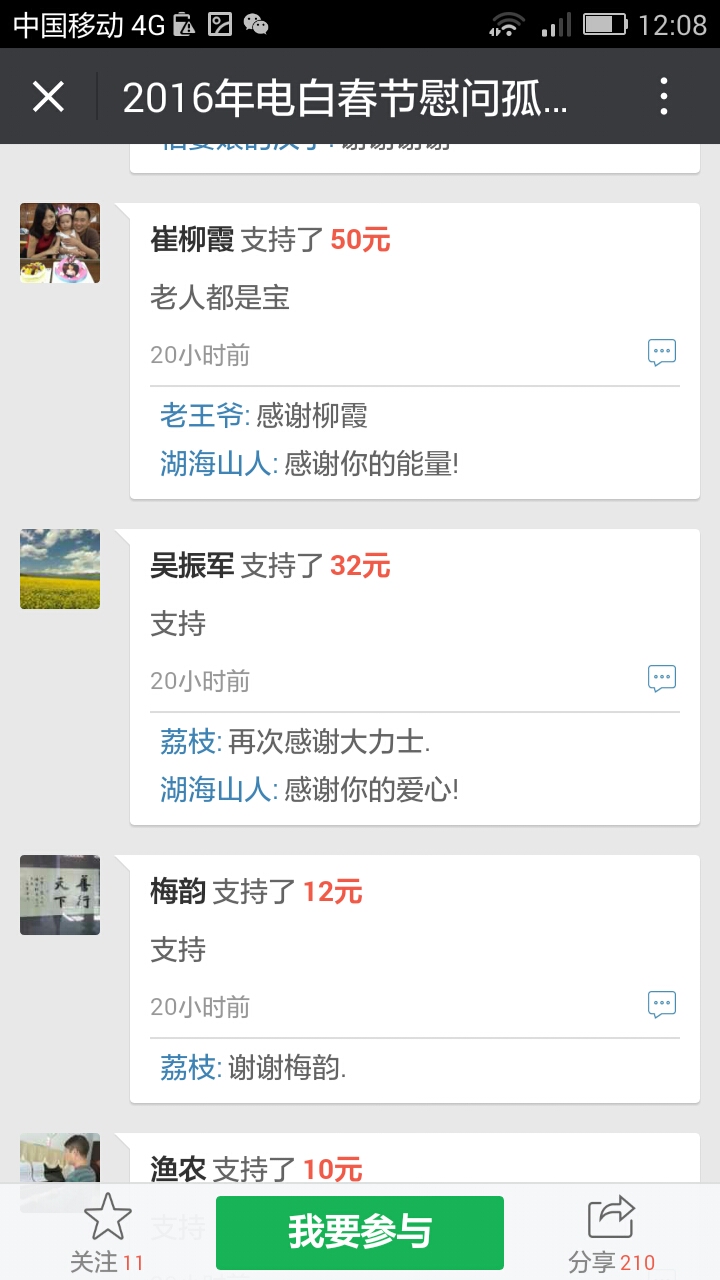 湖海兄已经很尽心尽力了,有多少钱就办多大事,顺其自然,有心到老人们很知足了,有时老人就是想有人过去陪他们聊聊天的。 我更担心的是论坛的人气,国不可无士,士隐国必衰,参政议政是士之本质,究竟是什么造成士隐声微,万马齐喑。