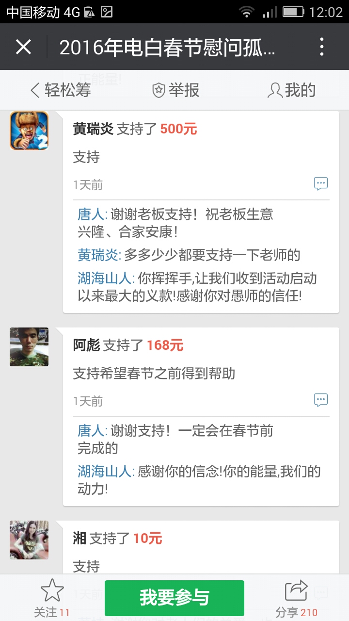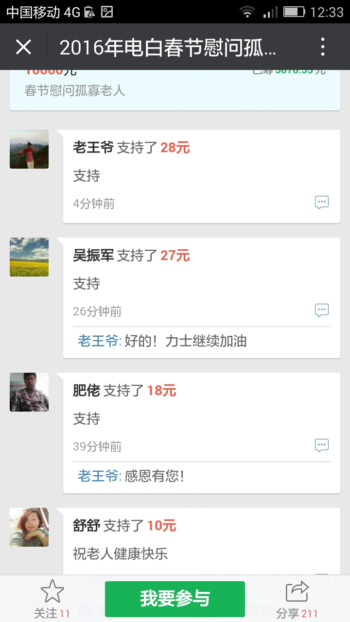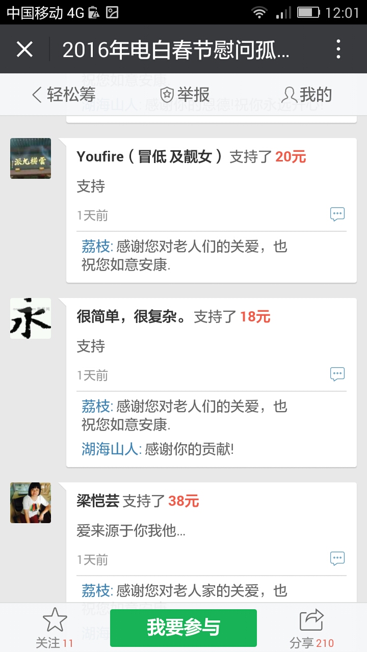湖海山人 荣誉会员 荣誉会员 注册 2006-09-25 消息 25,094 反馈评分 766 点数 191 2016-01-22 #65 最新消息,在轻松筹上已经有6300多了。 我们收到第三个500元,,这是网名太阳花在轻松筹上献出的爱心。 同时129大将军也赞助291元.. 附件 Screenshot_2016-01-22-19-39-39.png 83.6 KB · 查看: 437