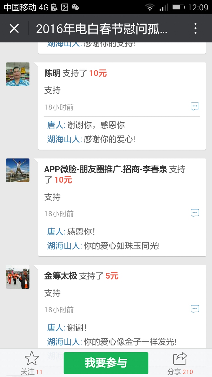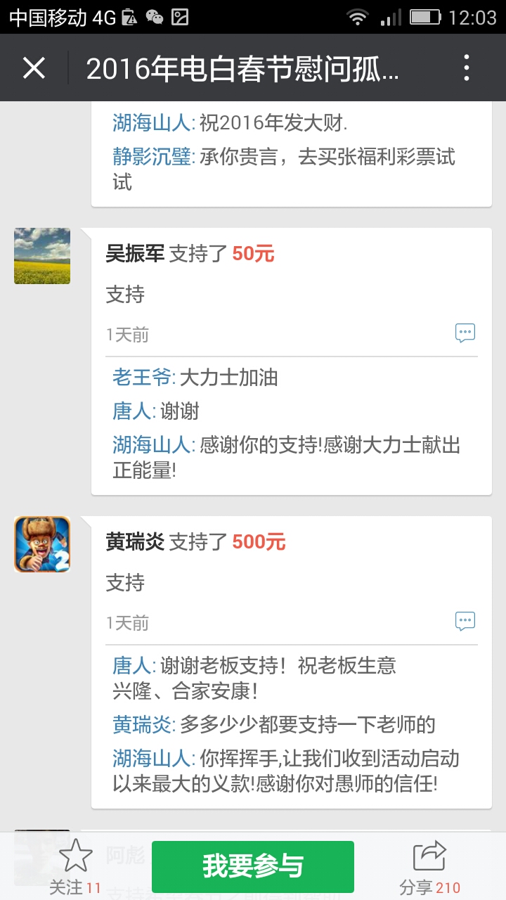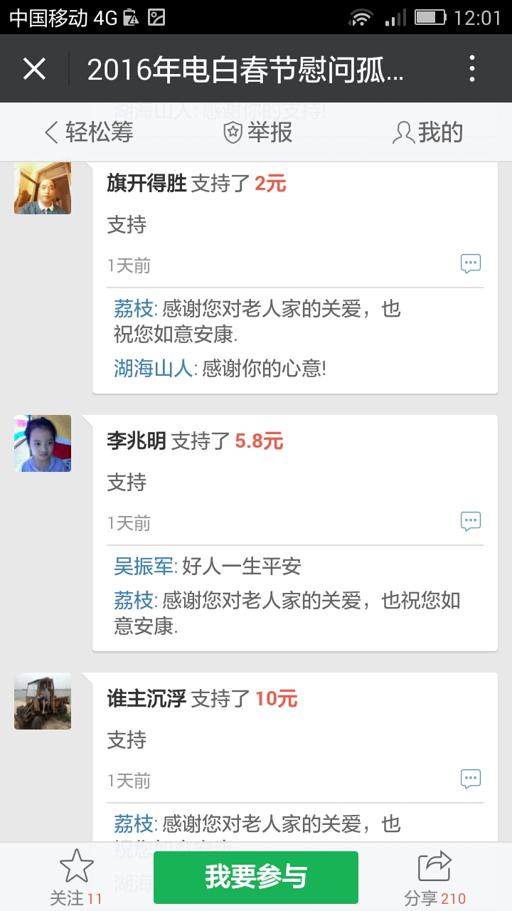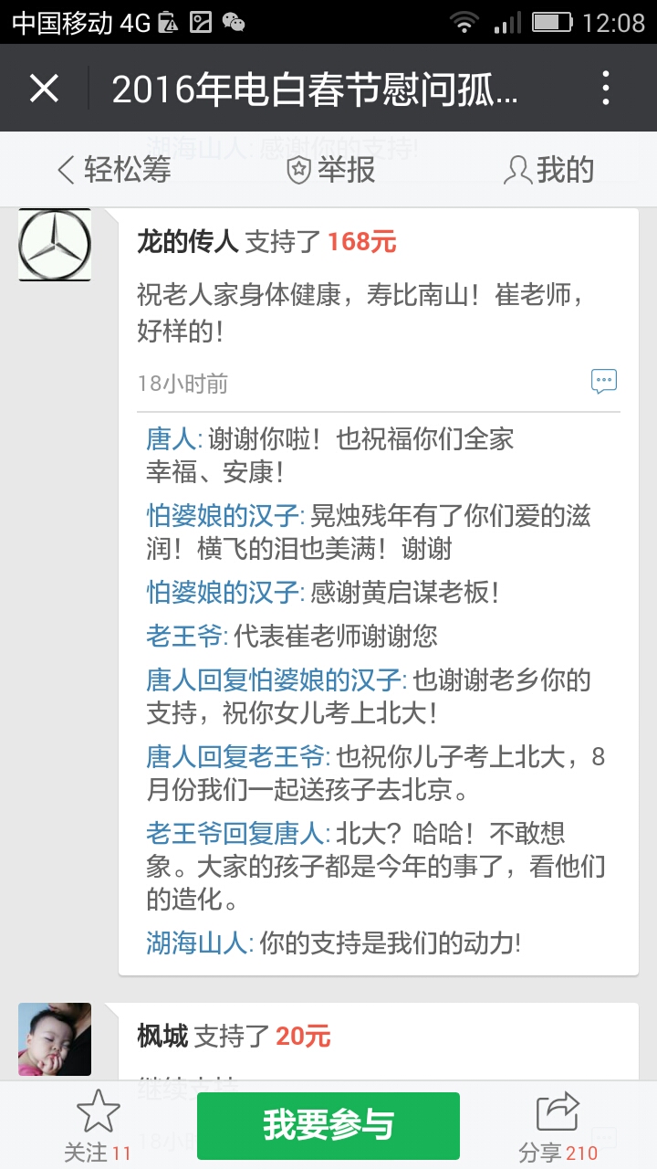 湖海山人 荣誉会员 荣誉会员 注册 2006-09-25 消息 25,094 反馈评分 766 点数 191 2016-01-22 #65 最新消息,在轻松筹上已经有6300多了。 我们收到第三个500元,,这是网名太阳花在轻松筹上献出的爱心。 同时129大将军也赞助291元.. 附件 Screenshot_2016-01-22-19-39-39.png 83.6 KB · 查看: 437