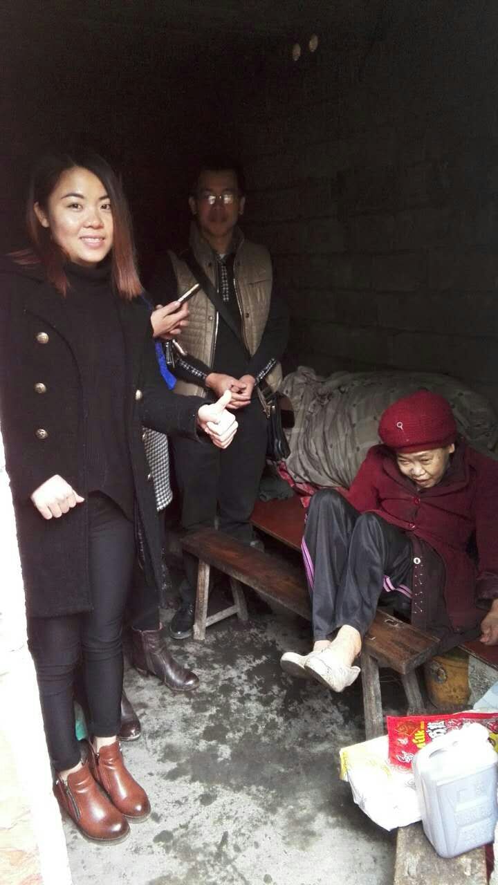 探访望夫民乐了塘村自强儿童李福喜,左为他婶.右为我们的队友