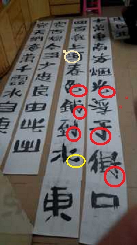 基本认同前几楼所提的左右对联排版布置显高的问题,而字体颜色及字体中败笔的问题不太认同。